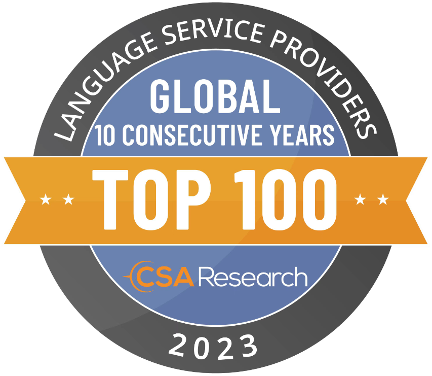 近日,國際知名的語言咨詢研究公司CSA Research發(fā)布《The Top 100 Language Service Providers: 2023》(2023年全球百強(qiáng)語言服務(wù)商)榜單。新宇智慧被評為全球百強(qiáng)語言服務(wù)提供商之一,排名第55位,并獲得連續(xù)10年全球百強(qiáng)語言服務(wù)商榮譽(yù)徽章。