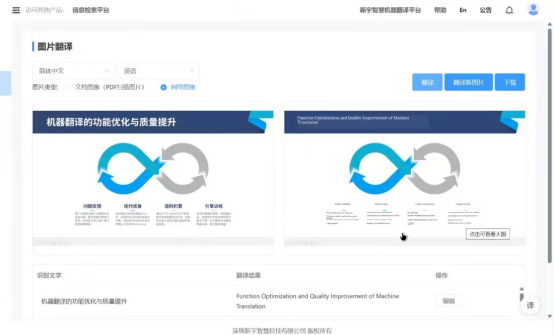The platform also supports the post-editing mode in professional scenarios. Users can call their own translation memory and terminology databases when translating documents. In the post-editing mode, the document will be automatically segmented, and the results of sentence segments that are repetitive or similar to those in the translation memory database will be marked, showing the matching rate between the original sentence and the sentence pair in the memory database. It also supports one-click replacement of hit terms and automatic storage of edited sentence pairs in the memory database, greatly improving the translation efficiency in professional scenarios and ensuring the consistency of translation output.