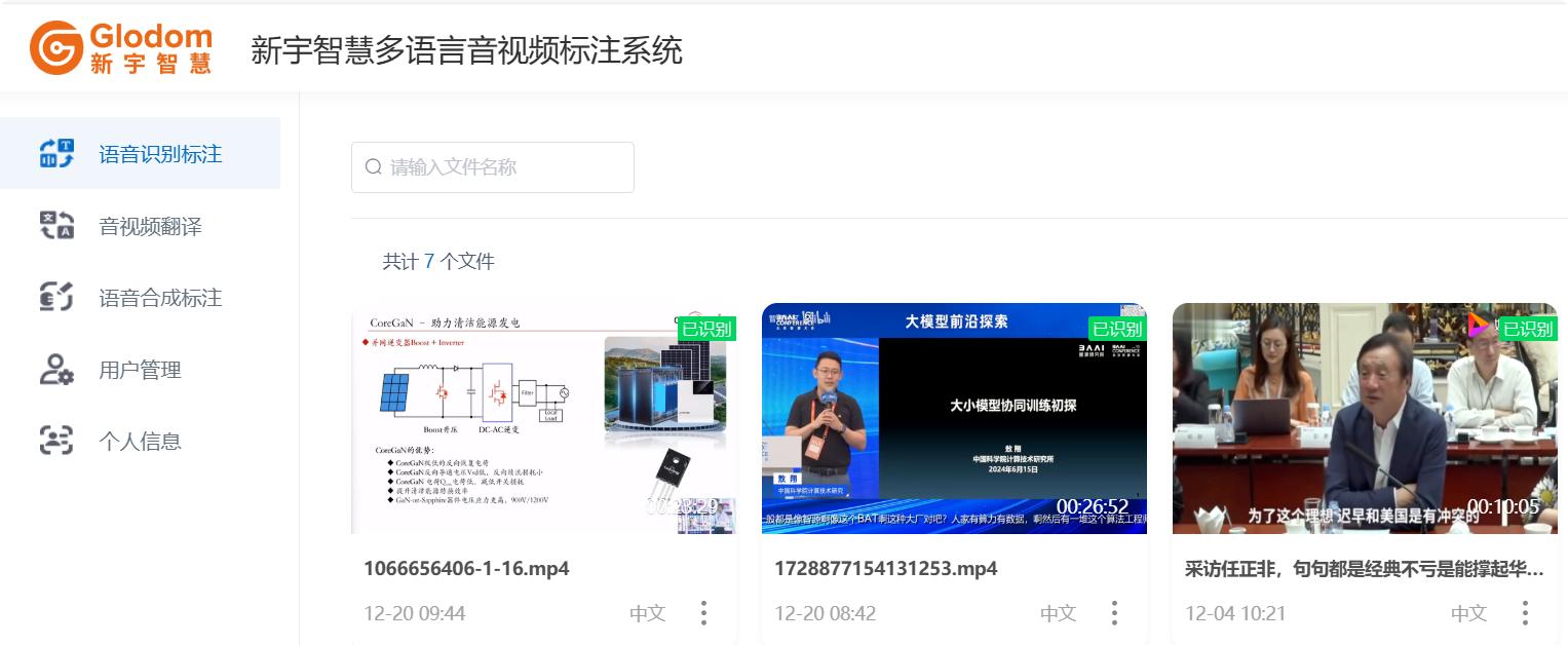 新宇智慧自主研發(fā)的多模態(tài)語音標注平臺,集成語音識別標注、音視頻翻譯、語音合成標注等核心模塊,全面支持文本譯后編輯與多語言處理,為AI語音模型訓練提供高精度、高效率的數(shù)據(jù)服務解決方案。
