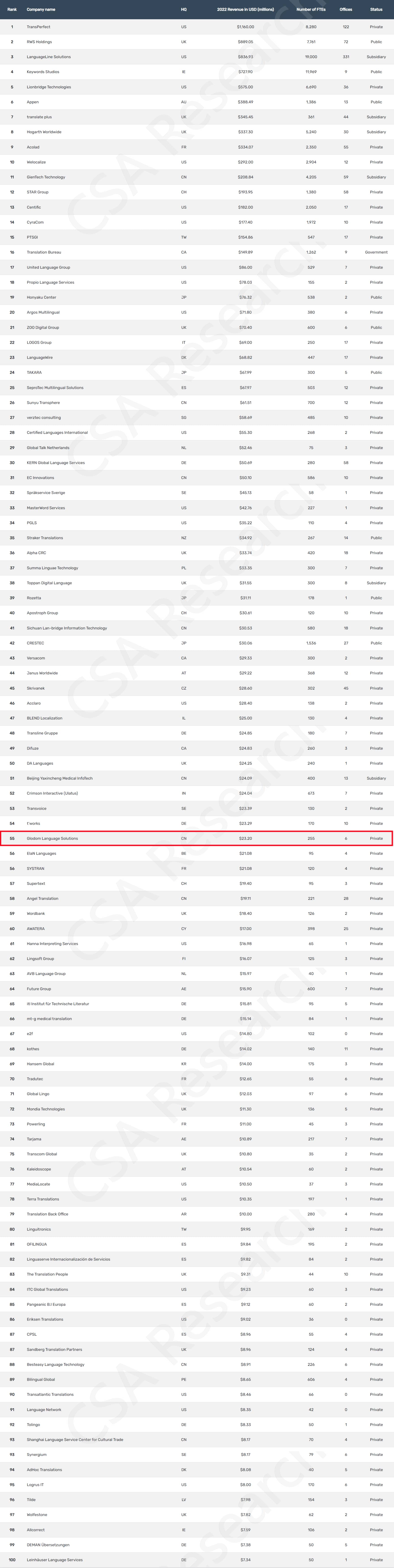 附:2023年全球百強(qiáng)語言服務(wù)商榜單