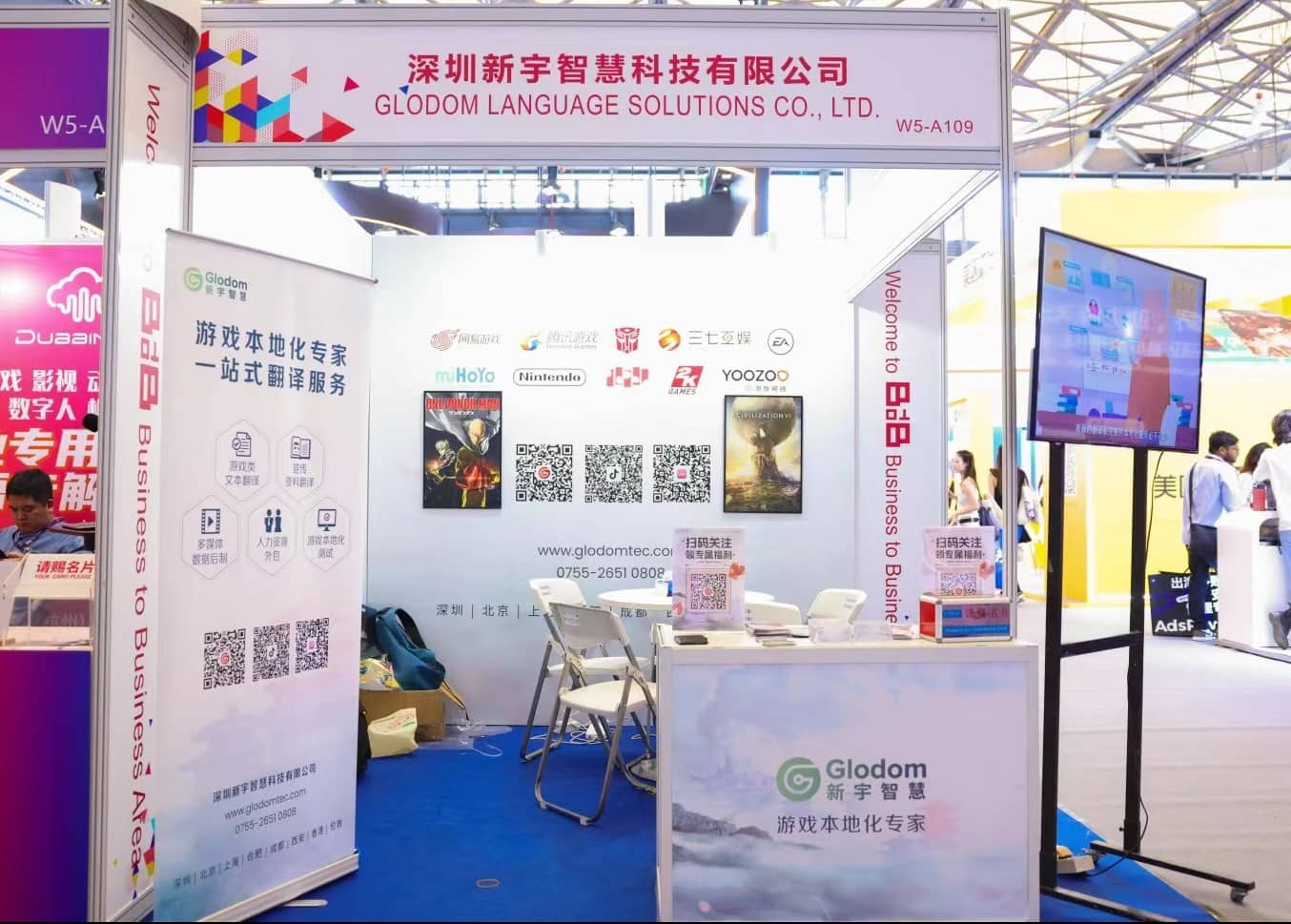 在BTOB展區(qū)的關鍵地帶,新宇智慧以卓越的游戲本地化解決方案閃耀登場。我們安排了經(jīng)驗豐富的游戲本地化專家駐守展臺,與來自世界各地的游戲廠商、運營商及平臺代表探討溝通,交流寶貴的本地化經(jīng)驗。從任天堂到網(wǎng)易游戲,從EA到騰訊,新宇智慧憑借一流的服務質量,已與眾多頂尖游戲公司建立了穩(wěn)固的合作關系,提供包括游戲界面翻譯、本地化測試、宣傳資料制作在內(nèi)的全方位服務,助力游戲跨越語言與文化界限,觸達全球玩家。